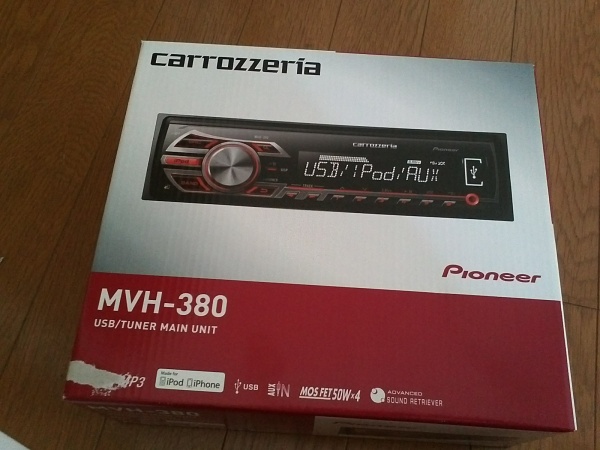 けっこう前からカーステが調子悪かったのですが、どーにもメンド臭いし、あんまり車内で音楽を聴かないので(一人で車に乗る時はガンガン聴きますが、家族と乗っている時はあんまり聴きたくないんですよねー)、なかなか着手しなかったんですが、いよいよカーステがダメになったっぽいので、パイオニア、カロッツェリアのMVH-380、を買ってみた。